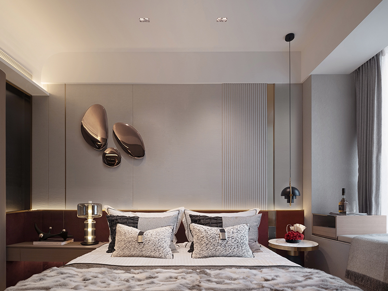 灯带布局:智能灯带沿电视背景墙轮廓粘贴(隐藏式安装,避免直射眩光),作为氛围辅助照明;