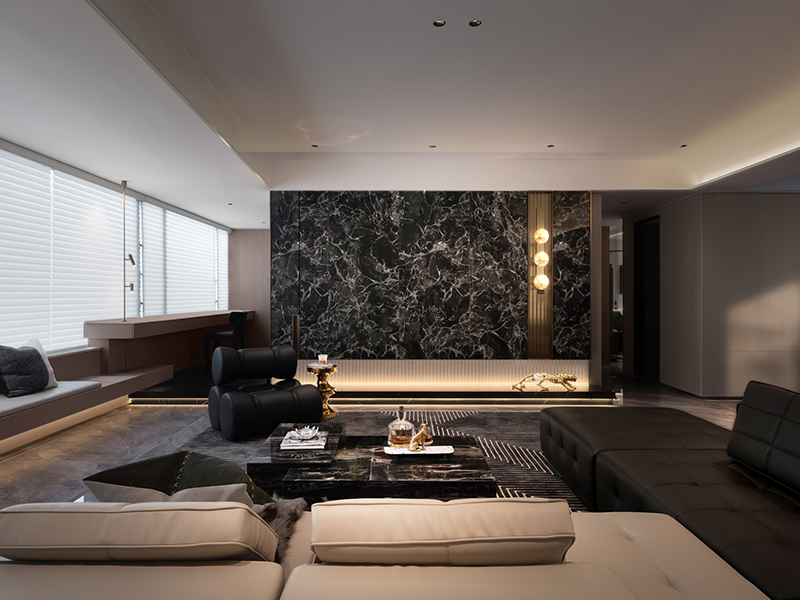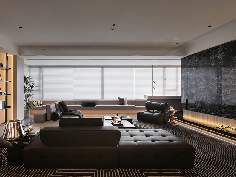 灯带:电视背景墙采用隐藏式嵌入安装,沙发背景墙采用贴墙式隐藏安装,均避免光线直射人眼 / 屏幕