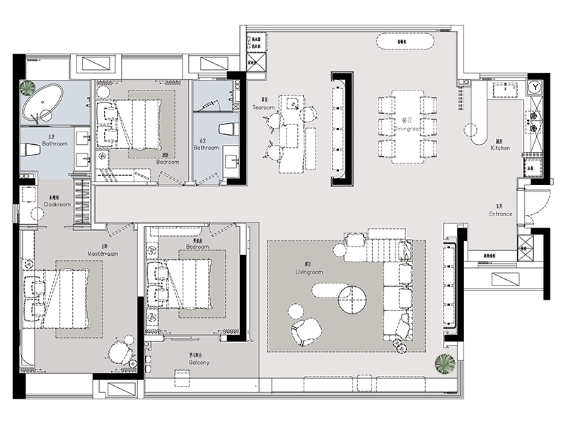 射灯:3 个均匀分布于客厅边缘吊顶(避开观影视线直射区),覆盖过道衔接区,避免光线干扰屏幕