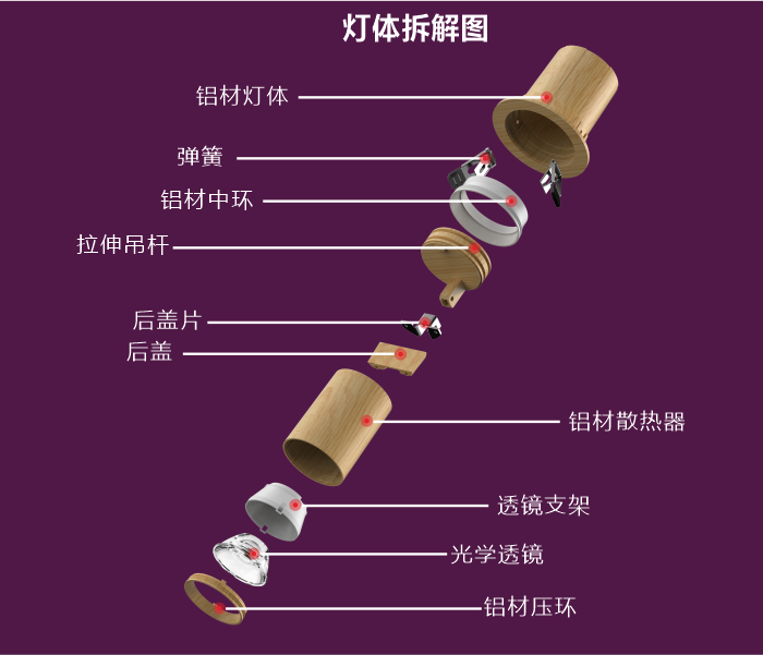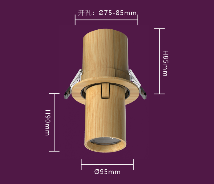 胡桃木伸缩嵌入式射灯 客厅吊顶 75-85mm 可调角度